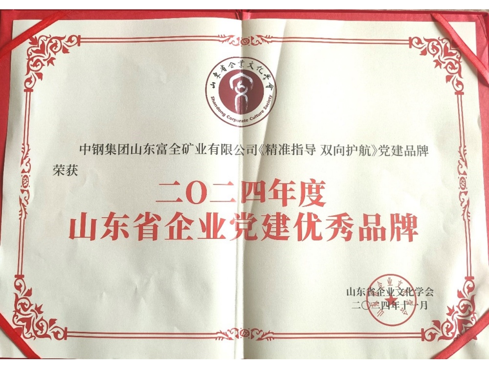 中钢富全矿业荣获2024年度山东省企业文化建设先进单位并入选山东省企业党建品牌优秀案例