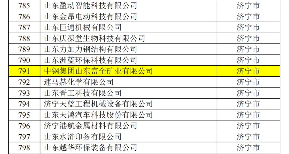 近日,山东省工业和信息化厅公布了2024年度山东省数字经济“晨星工厂”名单,中钢集团山东富全矿业有限公司成功入选。