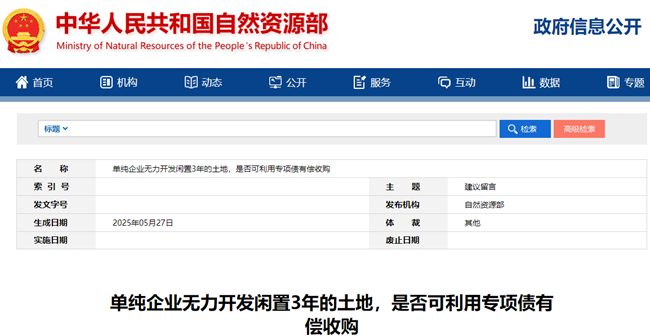 单纯企业无力开发闲置3年的土地,是否可利用专项债有偿收购