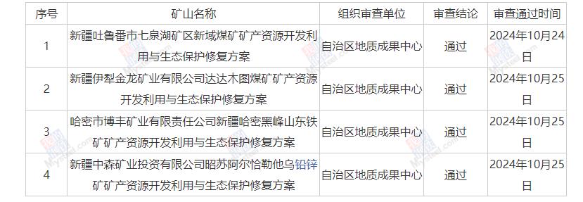 新疆4个矿产资源开发利用与生态保护修复方案项目报告审查情况