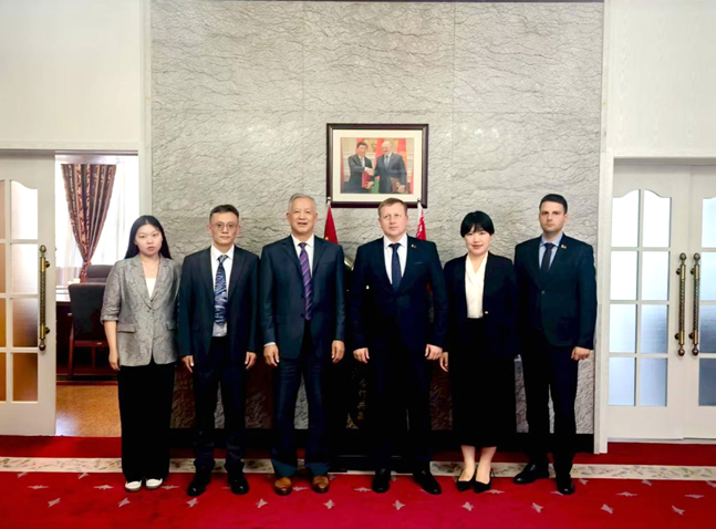 2025年7月21日下午,中国矿业联合会车长波秘书长一行拜会白俄罗斯共和国驻华大使馆,与高级参赞别列佐夫斯基·德(БЕРЕЗОВСКИЙ Дмитрий Сергеевич)进行了友好而广泛的会谈。双方就白俄罗斯代表团参加2025(第二十七届)中国国际矿业大会,以及中白两国矿业企业在多领域开展合作等事宜交换了意见。