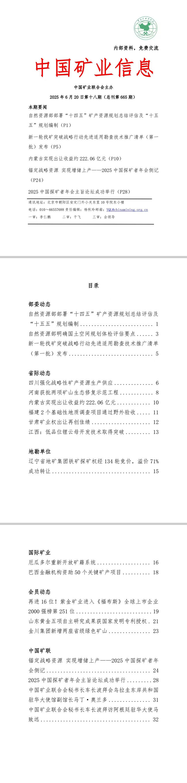 2025年6月16日—6月20日《中国矿业信息》第十八期(总刊第665期)