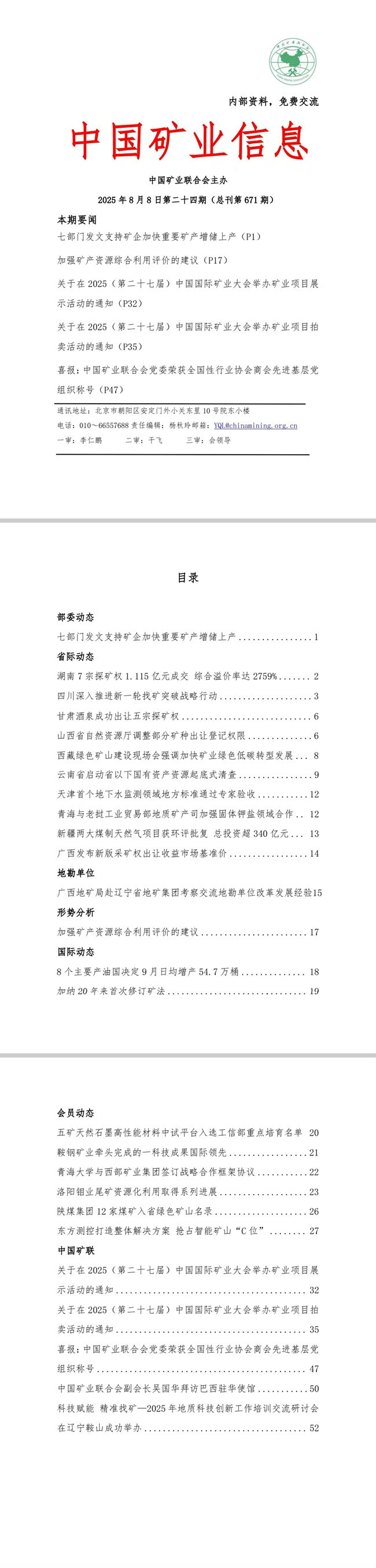 2025年8月4日—8月8日《中国矿业信息》第二十四期(总刊第671期)