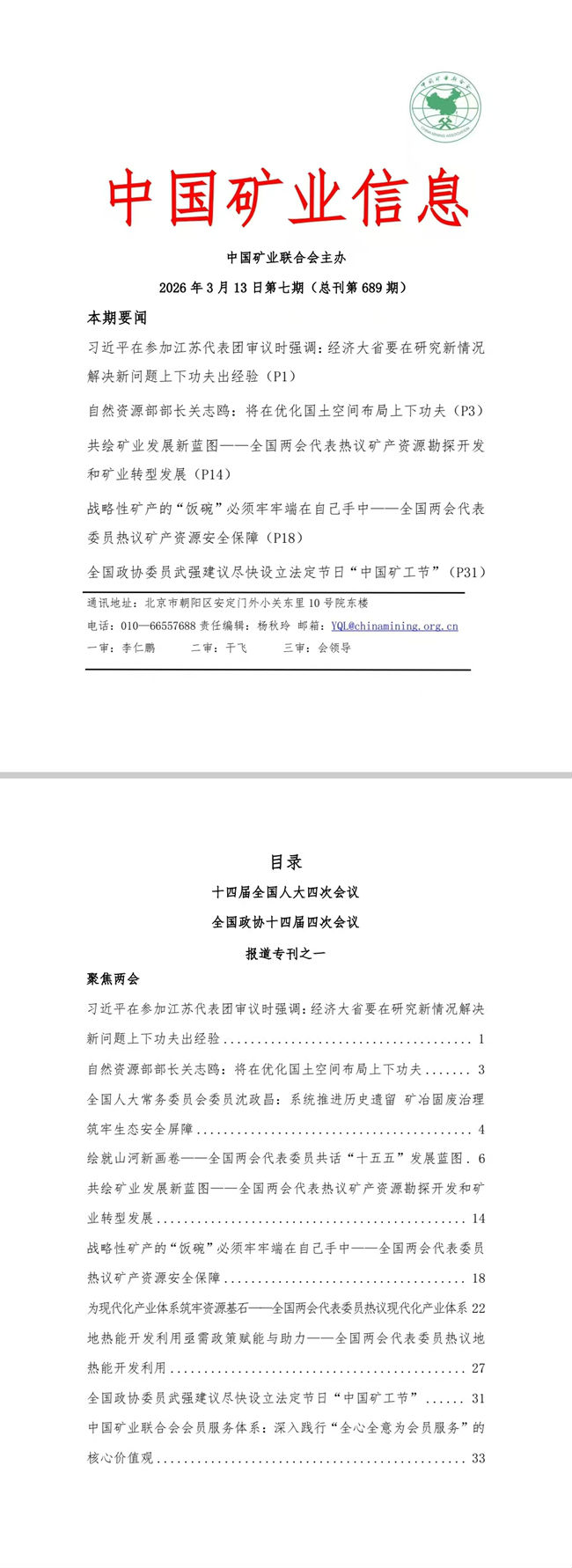 2026年3月9日—3月13日《中国矿业信息》第七期(总刊第689期)