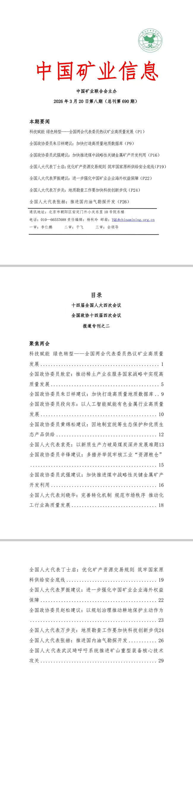 2026年3月16日—3月20日《中国矿业信息》第八期(总刊第690期)