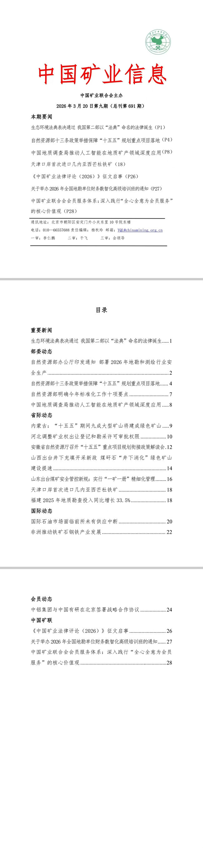 2026年3月16日—3月20日《中国矿业信息》第九期(总刊第691期)