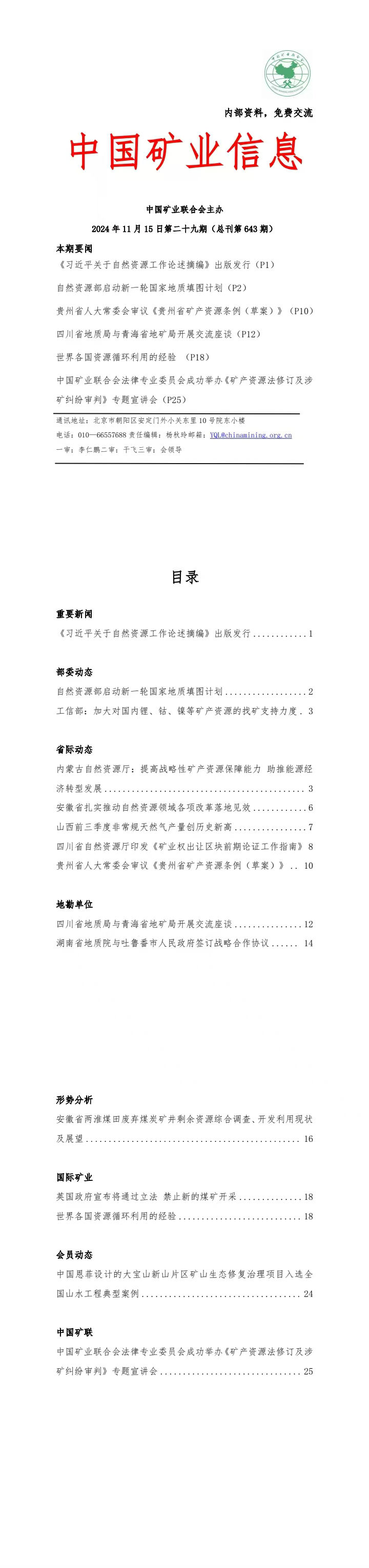 中国矿业网:2024年11月11日—11月15日《中国矿业信息》第二十九期