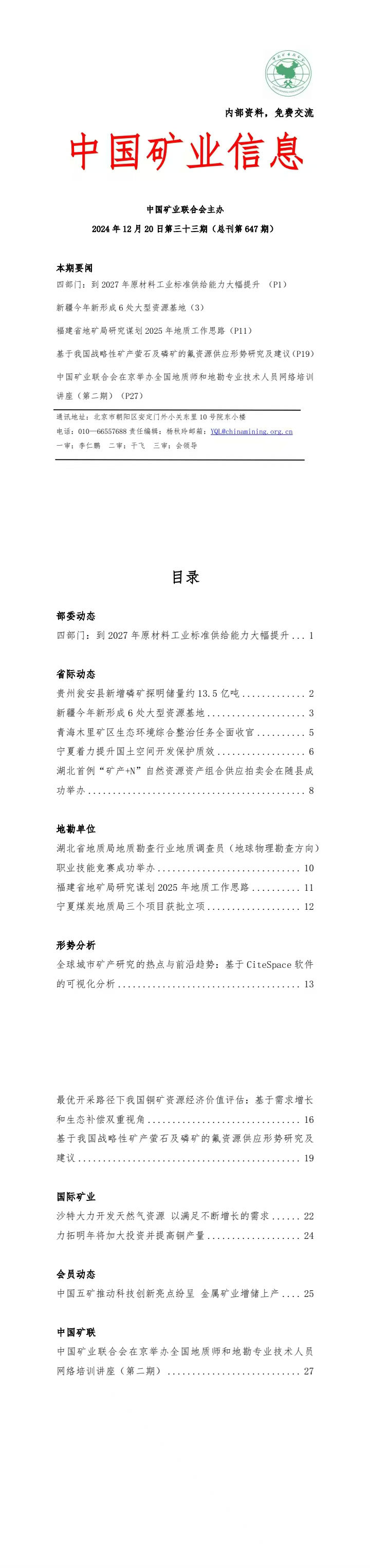 中国矿业网:2024年12月16日—12月20日《中国矿业信息》第三十三期