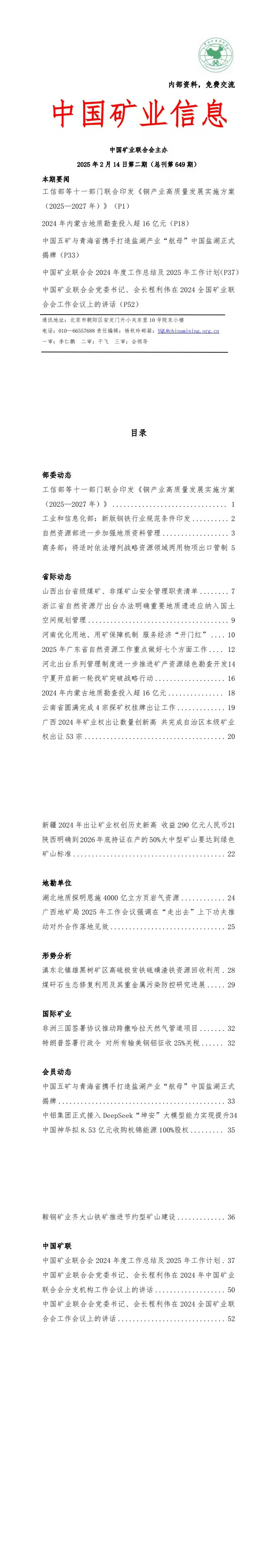 中国矿业网:2025年2月10日—2月14日《中国矿业信息》第二期