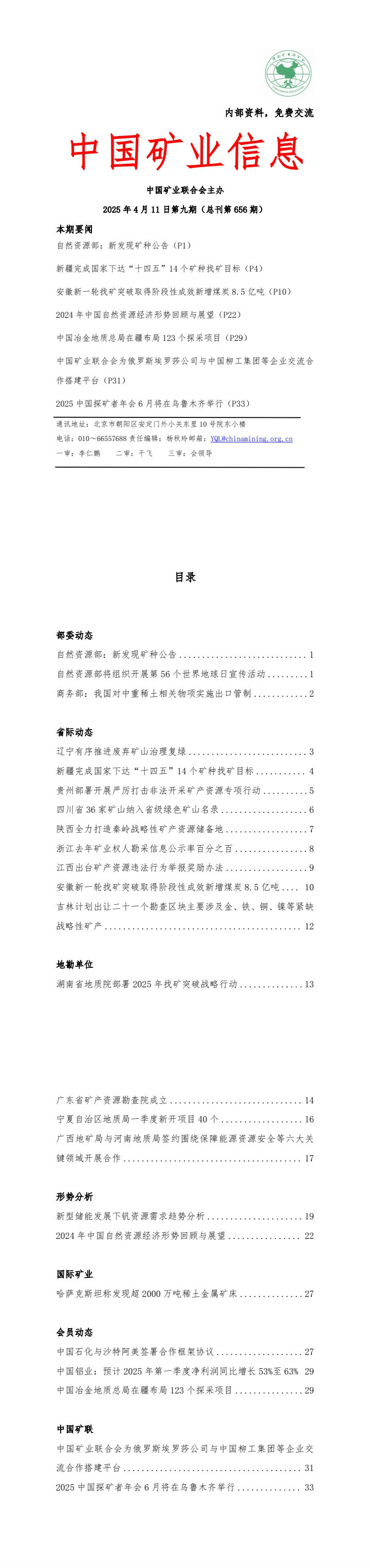 中国矿业网:2025年4月7日—4月11日《中国矿业信息》第九期
