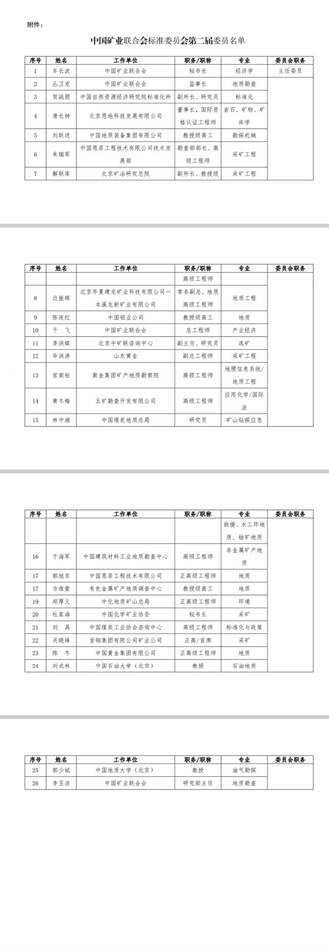 根据中国矿业联合会标准化工作需要,拟对我会标准委员会进行换届。为进一步听取各方意见,现将有关委员名单予以公示(详见附件)。