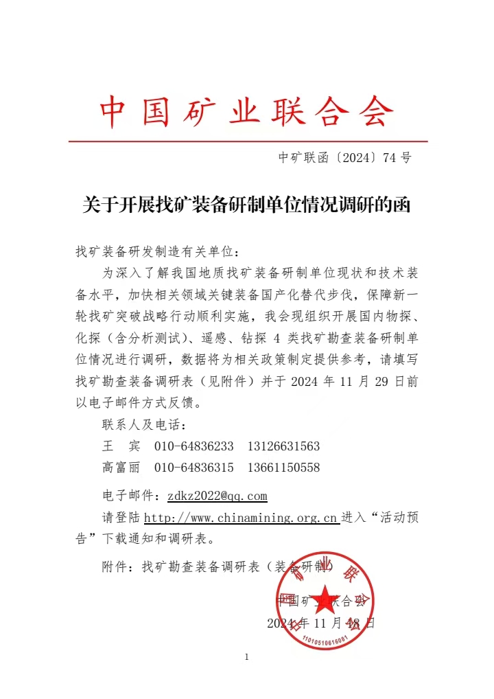 中国矿业联合会:关于开展找矿装备研制单位情况调研的函