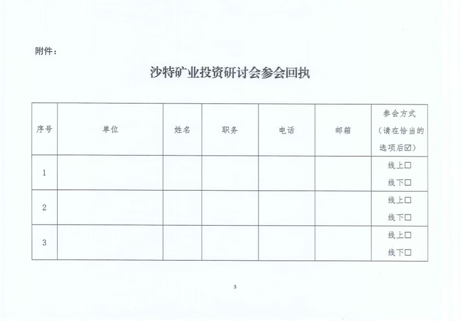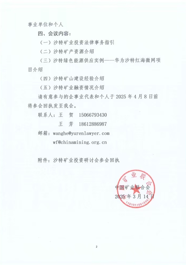 中国矿业联合会关于组织沙特矿业投资研讨会的通知
