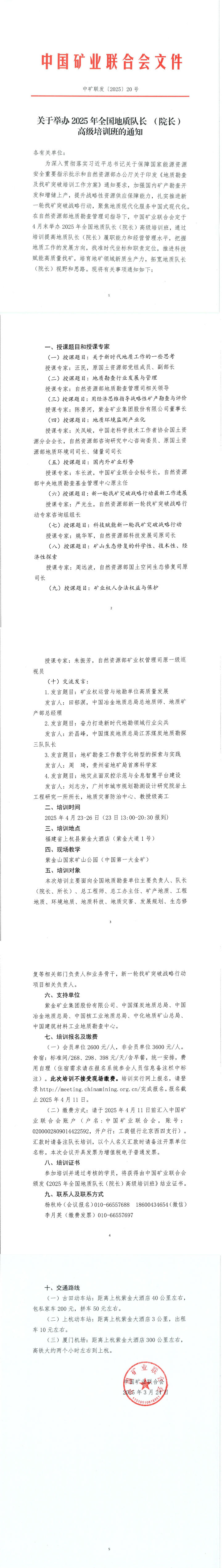 关于举办2025年全国地质队长 (院长)高级培训班的通知