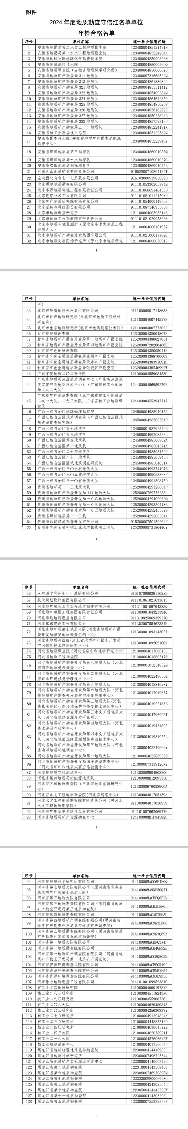 附件:2024年度地质勘查守信红名单单位年检合格名单