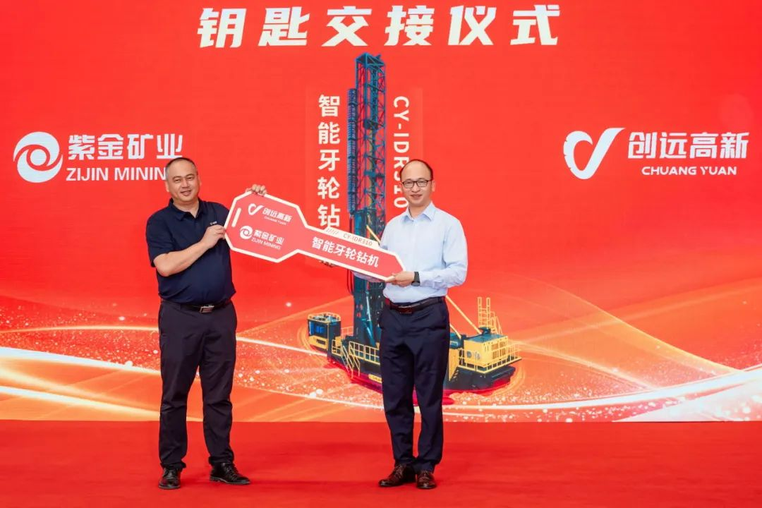 全球首发:张学泉副总裁将象征信任与使命的“金钥匙”模型,交付给首位CY-IDR310牙轮钻机的战略用户——紫金矿业集团代表赖海澜。这是首台高原高寒双动力智能牙轮钻机整装待发,即将启程奔赴海拔5000余米的西藏巨龙铜业项目,接受极寒环境的实战检验。