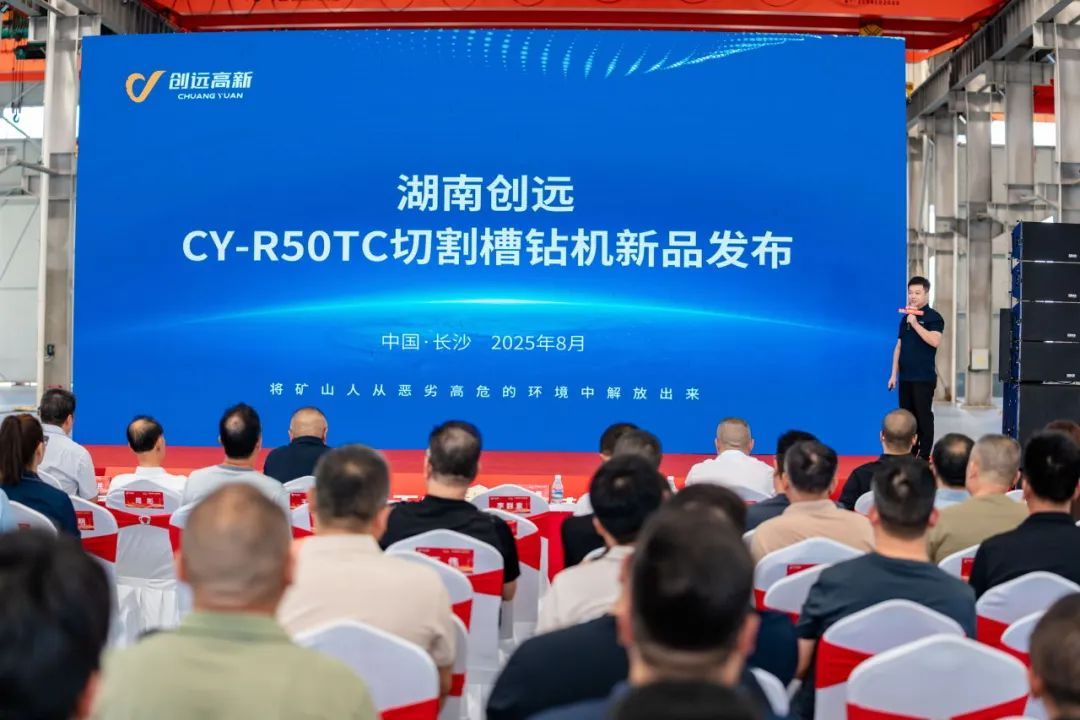 8月15日,创远高新新品发布会暨新园区开业仪式在湖南宁乡经开区盛大举行,主题为“金玉启新程,智装赋未来”。活动汇聚了政府部门、行业协会、战略合作伙伴及业内同仁的众多嘉宾,共同见证创远高新智能制造基地正式投产,以及全球首创的CY-R50TC智能化切割槽天井钻机和CY-IDR310全液压智能牙轮钻机发布。