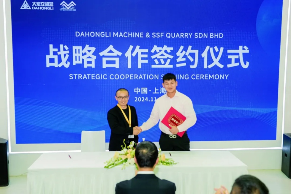 展位现场大宏立专业人员带来的300型环保破碎站、G系列高压辊磨机的产品推介演讲。大宏立董事长甘德宏与马来西亚SSF集团公司董事赖明富在展会现场达成战略合作,并签署价值3000万的项目合同。这一合作现场吸引了百余人次现场观众与客商的关注。