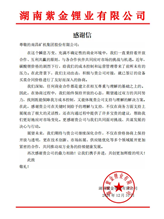 近日,南矿集团收到一封满载深情与厚谊的感谢信,该信由湖南紫金锂业有限公司精心撰写。在这封纸短情长的信函中,客户不仅高度评价了南矿集团在项目实施、技术支持等方面的卓越表现,还深情表达了对双方未来继续深化合作、相互赋能、携手并进、共谋发展的殷切期望。