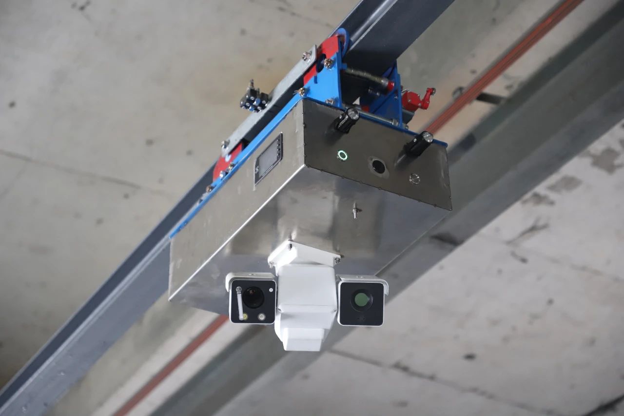 智能巡检机器人采用吊轨式设计,具有摄录、测温、粉尘监测、音频分析、漏料检测、主动避让、AI违章识别、皮带跑偏监测等功能,能够按照巡检操作人员预设的路线自主巡检,并在完成任务后自动回到零点进行电能补充。同时,控制画面中会呈现搭载相应传感器的各项参数,并通过无线网络将数据传输至中控室。一旦检测到异常情况,机器人会立即发出警报,并将详细信息推送至相关人员的终端设备,以便及时采取措施进行处理。这一智能化的巡检方式,不仅大大提高了巡检效率,减少了人工巡检的工作量和风险,还能够实现对设备的实时监控和精准维护,有效避免了设备故障的发生,保障了粉矿仓布料系统的稳定运行。