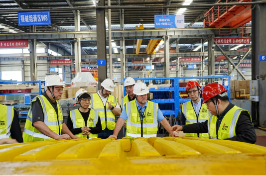 在南矿集团董事长李顺山的热情引领下,代表团成员走进企业的生产车间,细致入微地考察了各个生产环节,对南矿集团的生产工艺与管理水平进行了全面而细致的审视,并特别关注了两家公司合作项目——旋回破碎机的制造进度。他们对南矿集团严谨的生产流程、高效的管理机制表示由衷赞赏,特别是在看到规模宏大、技术先进的生产设备时,无不惊叹连连,纷纷举起手机记录,并与设备合影留念。