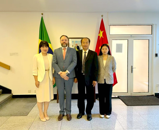 On 29 July 2025, Wu Guohua, Vice President of China Mining Association (CMA), led a delegation on a visit to the Embassy of the Federative Republic of Brazil in China. They held a friendly and productive meeting with Rodrigo Mendes Araujo, Counsellor for Energy and Intellectual Property of Brazil. The two sides fully exchanged views on matters including the participation of a Brazilian delegation in the 2025 (27th) China Mining Conference and Exhibition, deepening cooperation in the mining sector between China and Brazil, and promoting exchanges between mining associations and enterprises of the two countries.