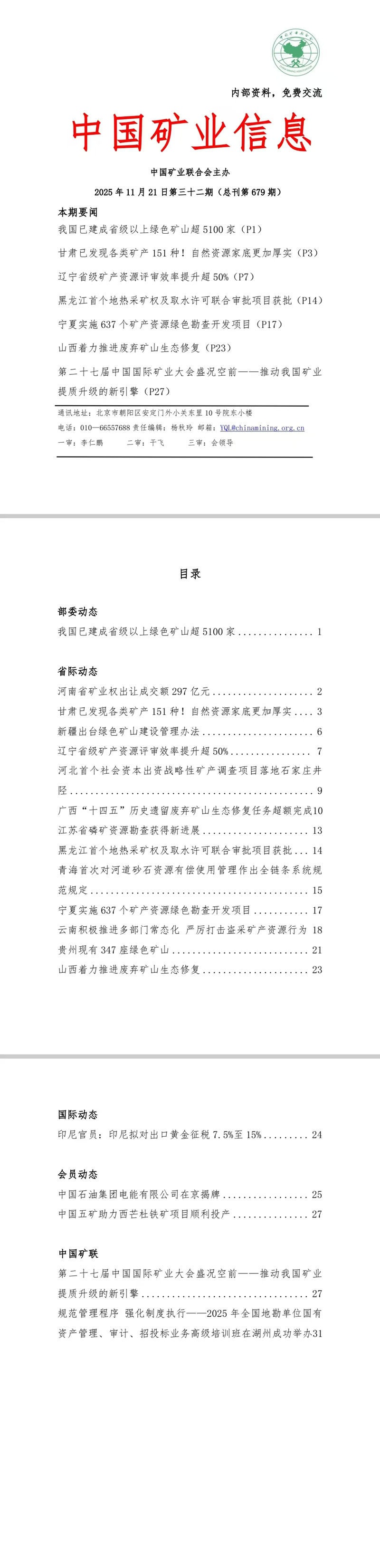 2025年11月17日—11月21日《中国矿业信息》第三十二期(总刊第679期)